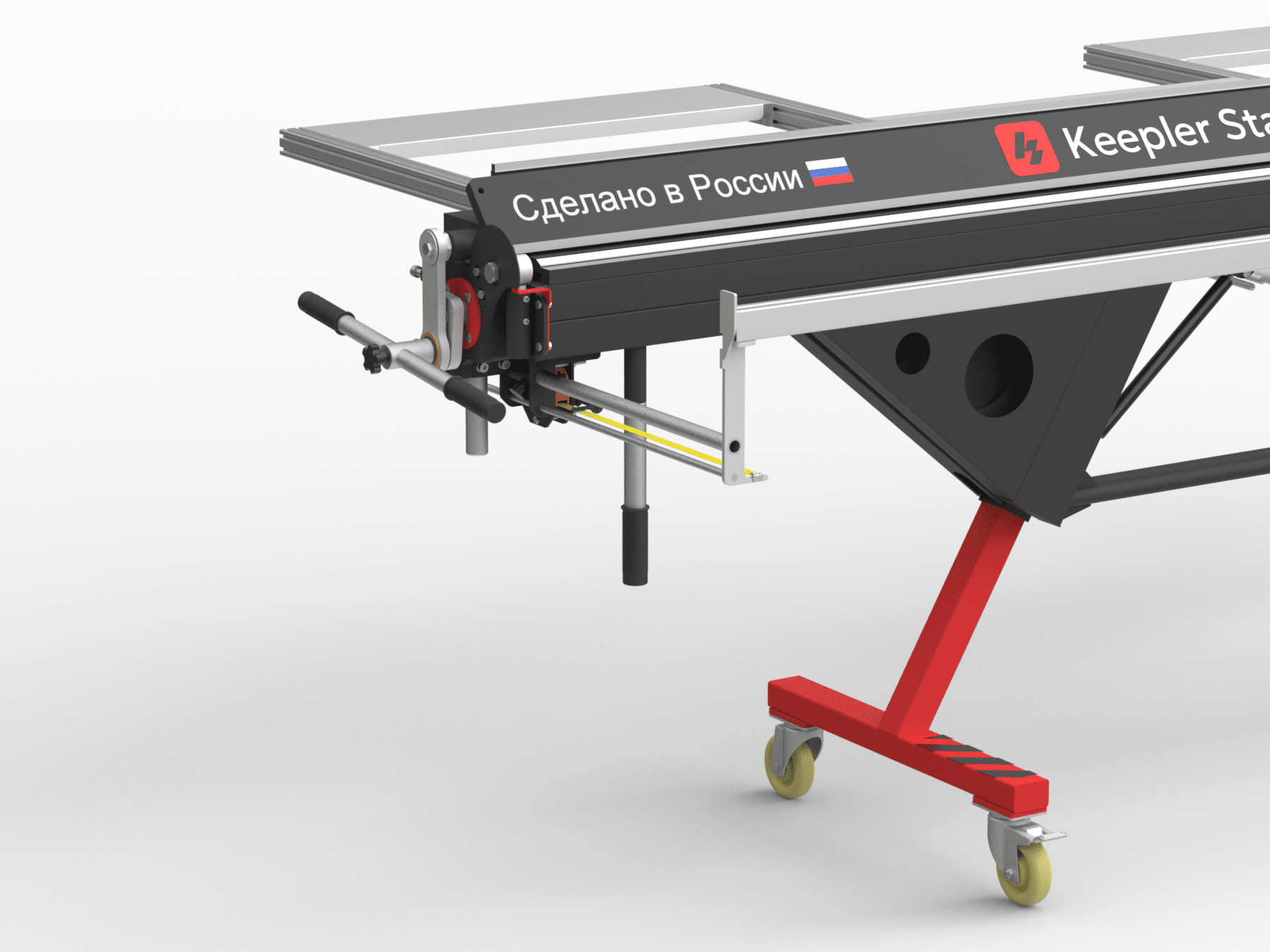 В базовой комплектации к станку идет отрезной нож, боковые угломеры и опоры с колесиками.